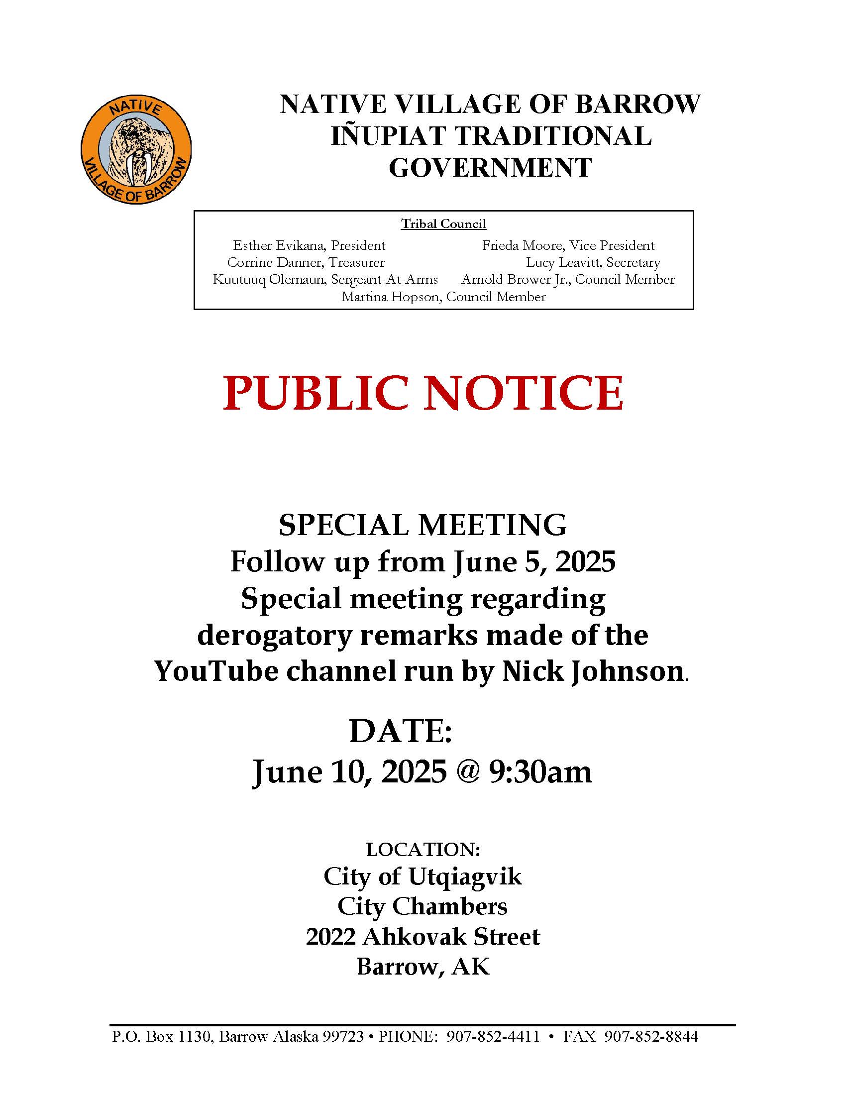 **Special Meeting Follow Up**